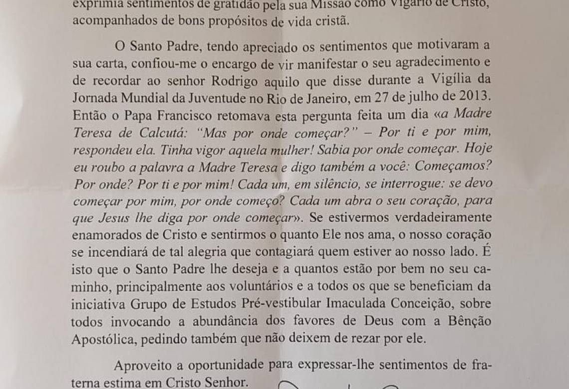 O Cursinho da Imaculada foi agraciado com o reconhecimento do Papa.
